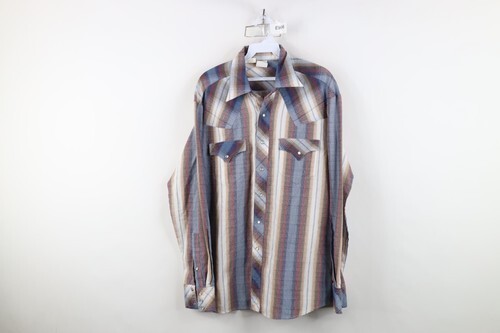 Vintage 70s Rockabilly Mens Large Rainbow Plaid Western Rodeo Snap Button Shirt