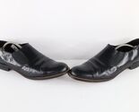 - Vintage 70s Stacy Adams Mens 12 D Leather Brogue Toe Cap Slip On Shoes Black USA