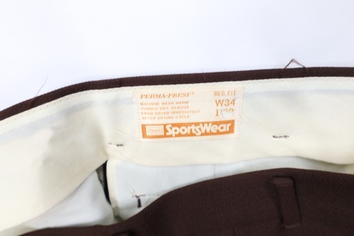 Vintage 70s Streetwear Mens 34x28 Knit Flare Wide Leg Chino Pants Brown USA