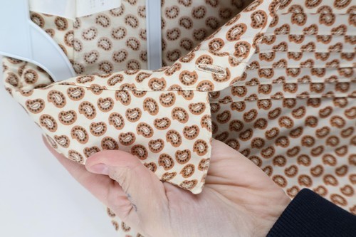 Loose threads bottom hem, cuffs, collar. Collar, cuffs discolored. Yellowed. Color faded. USA made