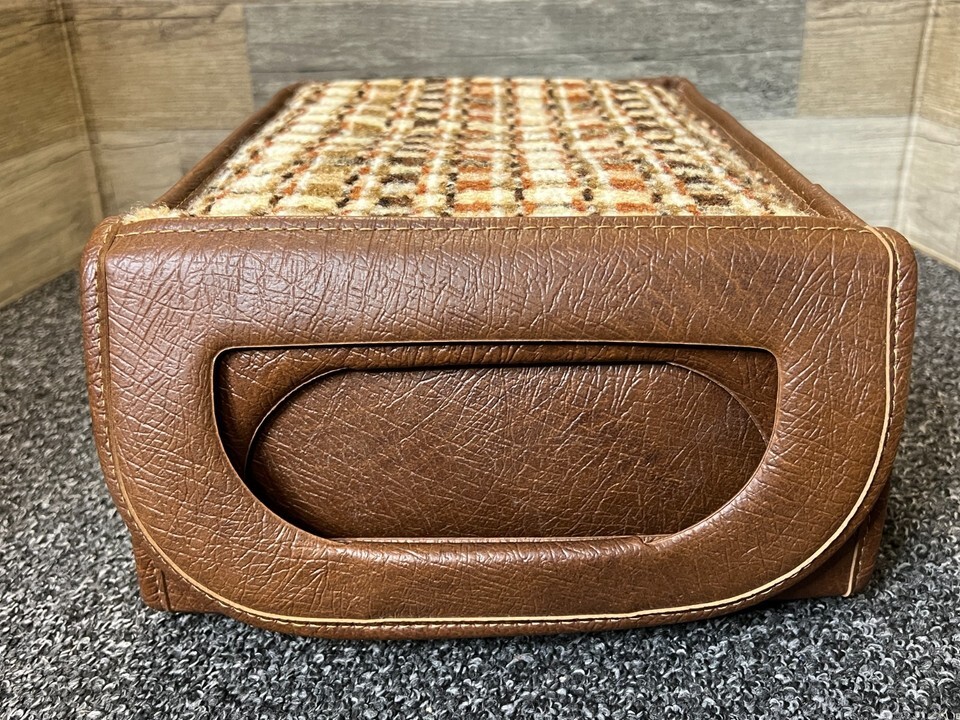 The item for sale is a brand new Vintage 1970's Thermos Buffet Bag Picnic Lunch Set Tweed Leather Tote Bag. Unused in original box.