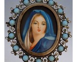 Vintage 800 Silver Virgin Mary Brooch – Hand Painted Portrait Pin Religious
