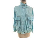 Vintage 80s 90s Aqua Blue 100% Cotton Jacket Unique Swirl Accents Women L - it is in as found condition, it has a tiny stain on the front pocket as shown