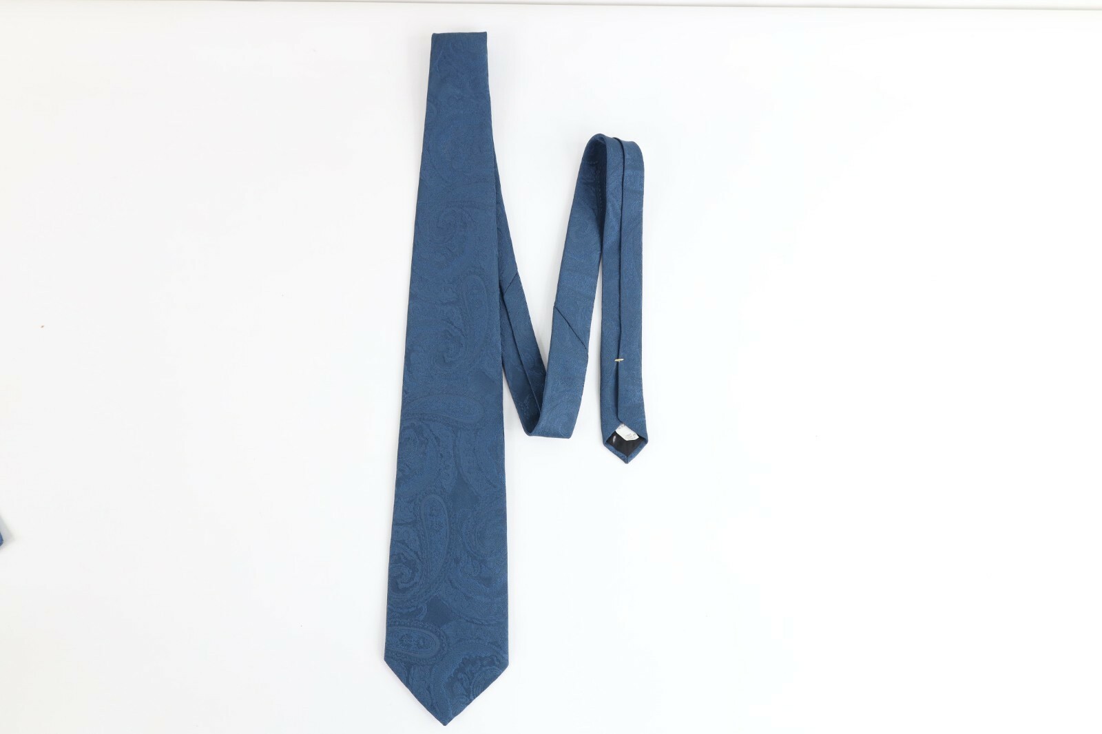 - Vintage 80s 90s Streetwear Paisley Geometric Neck Tie Wedding Formal Blue USA