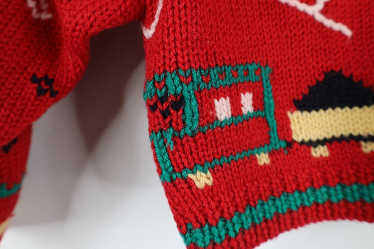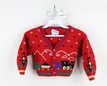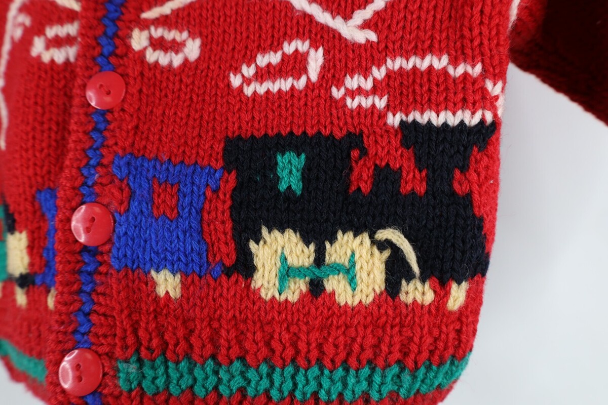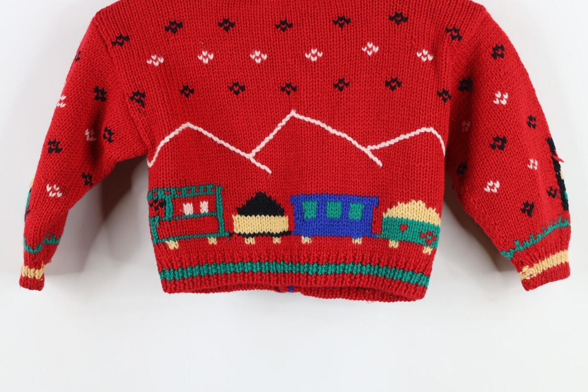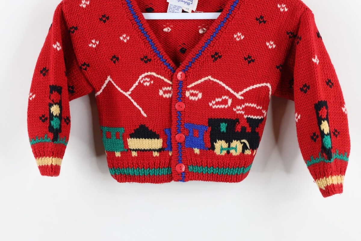 - Vintage 80s 90s Toddler Size 1T 2T Train Conductor Wool Knit Cardigan Sweater