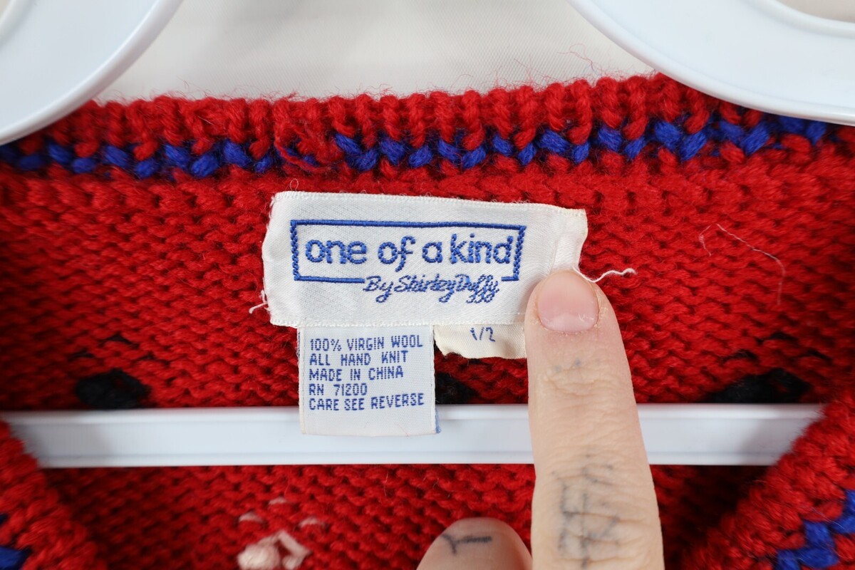 Vintage 80s 90s Toddler Size 1T 2T Train Conductor Wool Knit Cardigan Sweater