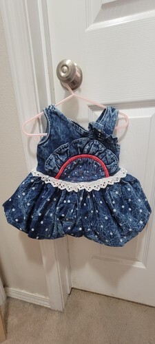 - Vintage 80s Baby Girls Sleeveless Acid Wash Jean Dress with White Lace Sz 12 mo