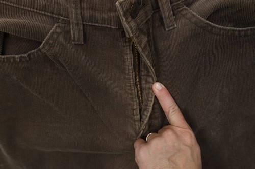 Blemishes both legs. Discolored and faded. Has pilling. USA made