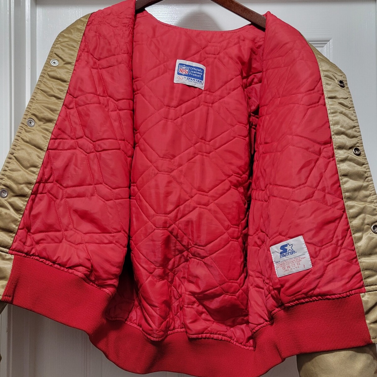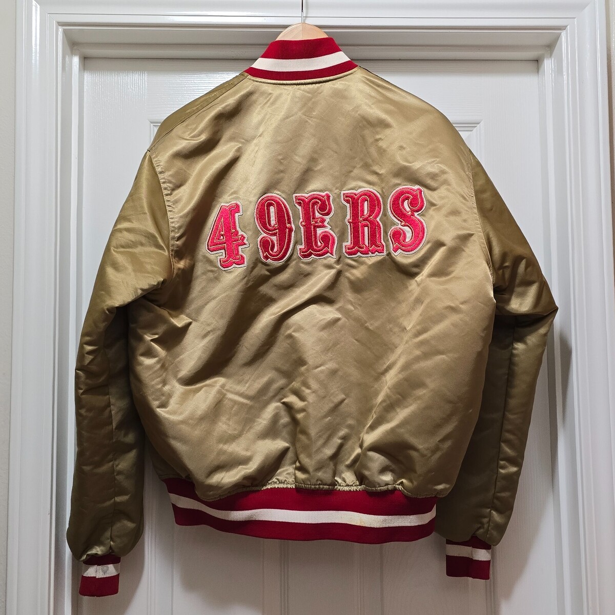 Vintage 80s Starter Pro Line San Francisco 49ers Gold Satin Jacket - Made in USA - Men's Tag Size Large. Fits like an XL.