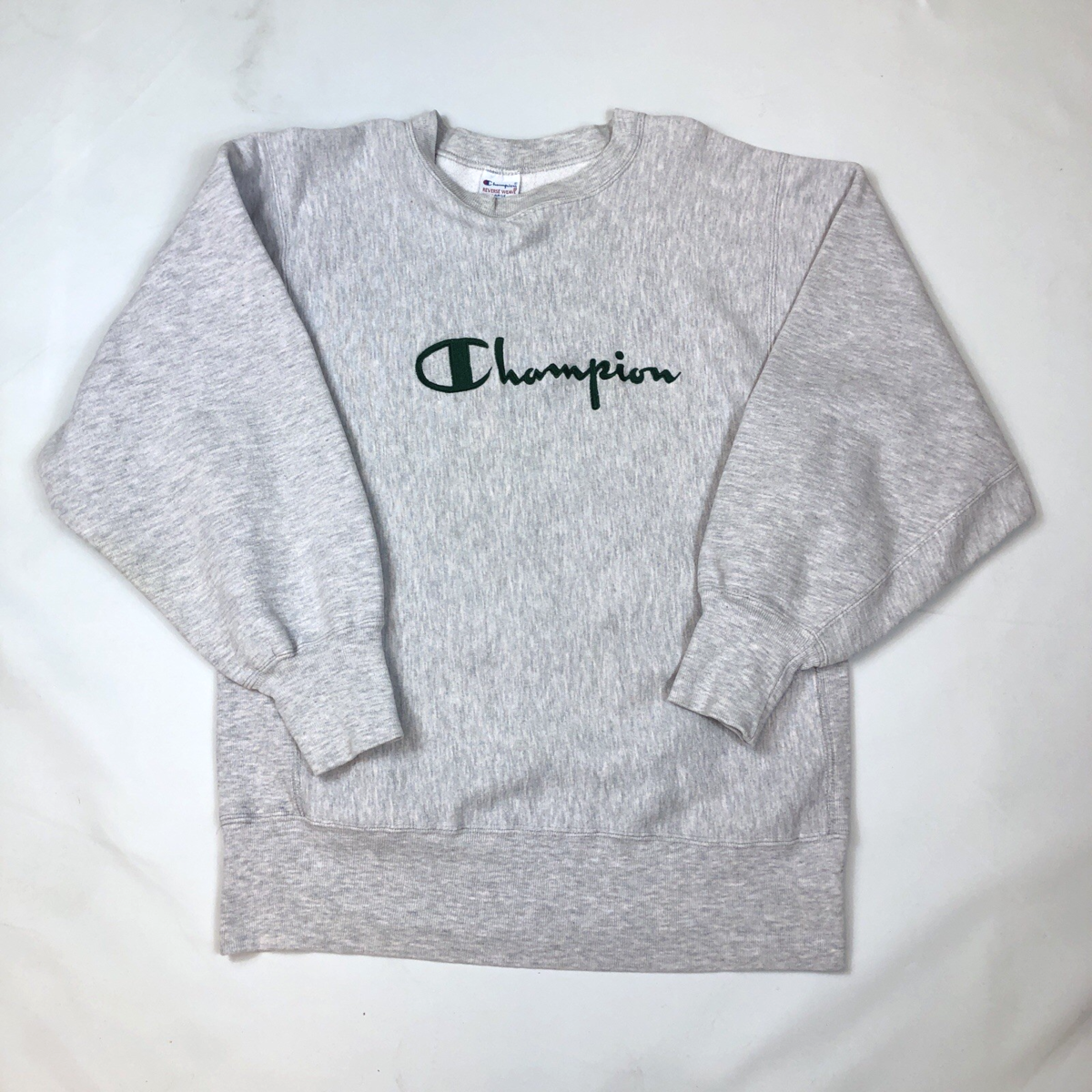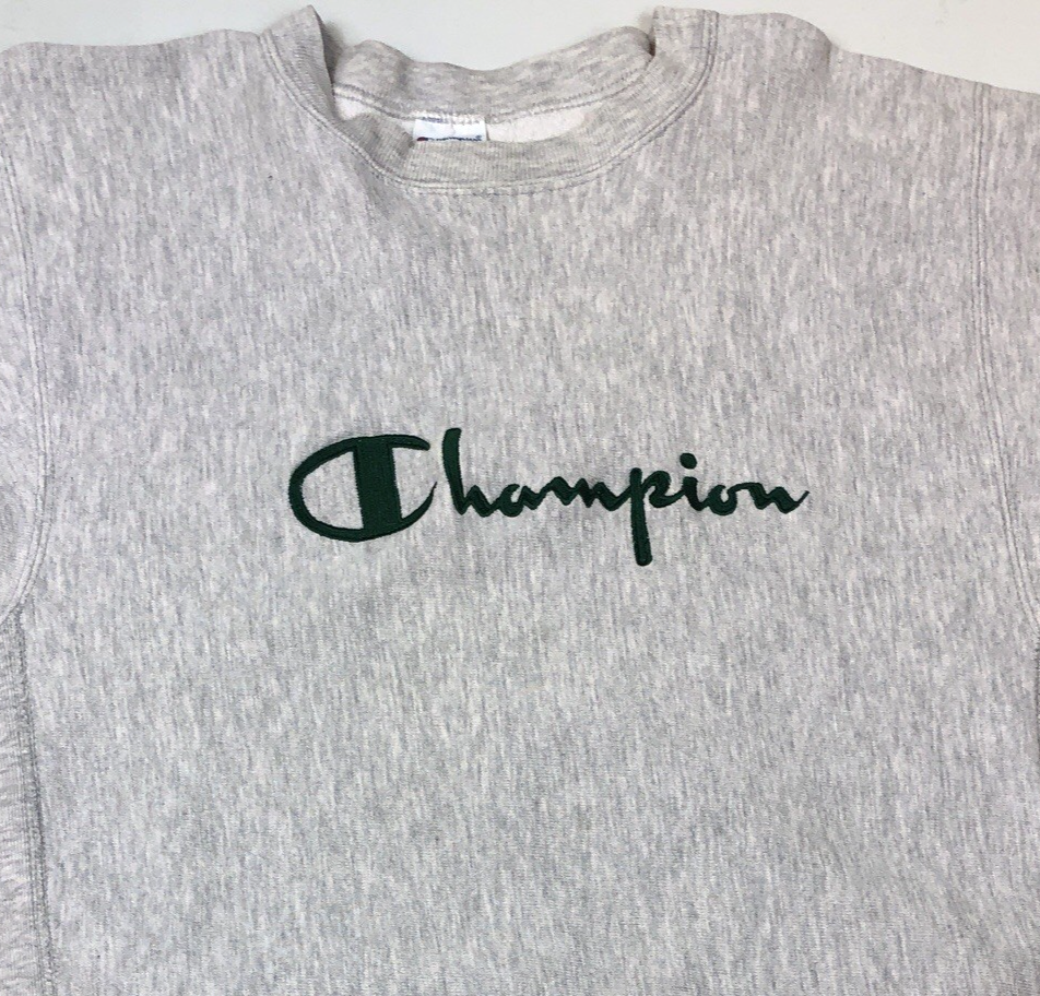 - Vintage 90's Champion Reverse Weave Spell Out Gray Crewneck Sweatshirt Large USA