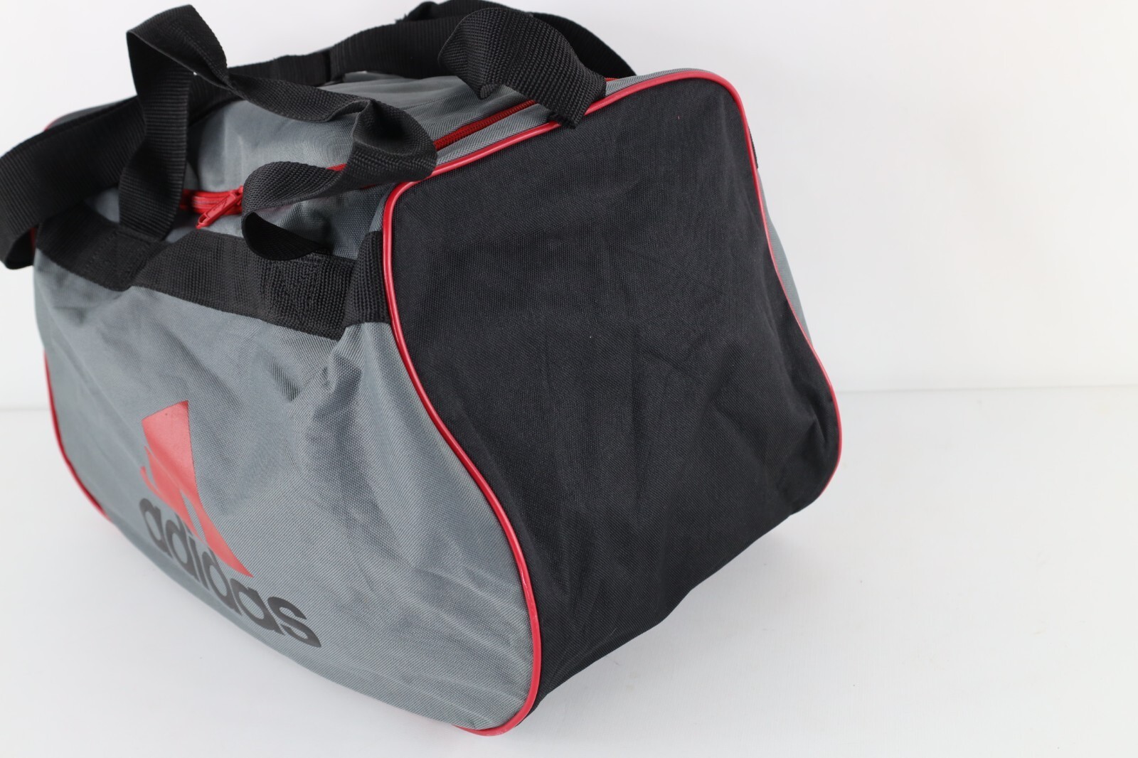 - Vintage 90s Adidas Spell Out Big Logo Handled Duffel Duffle Bag Gym Bag Gray