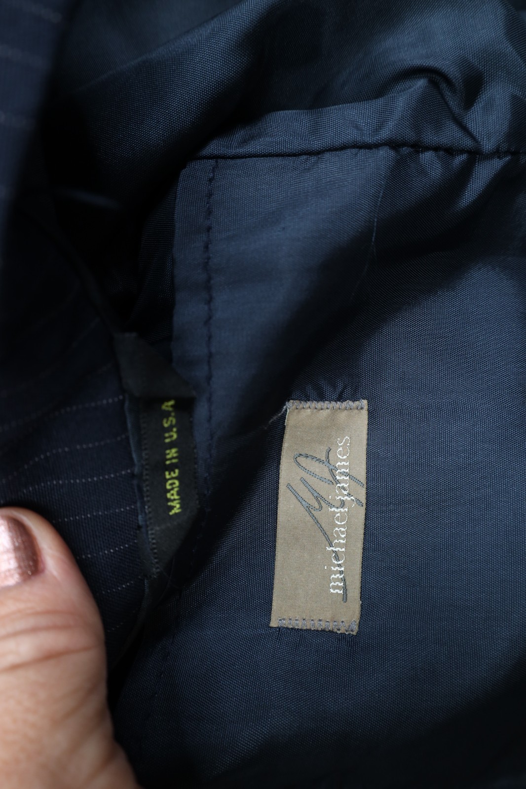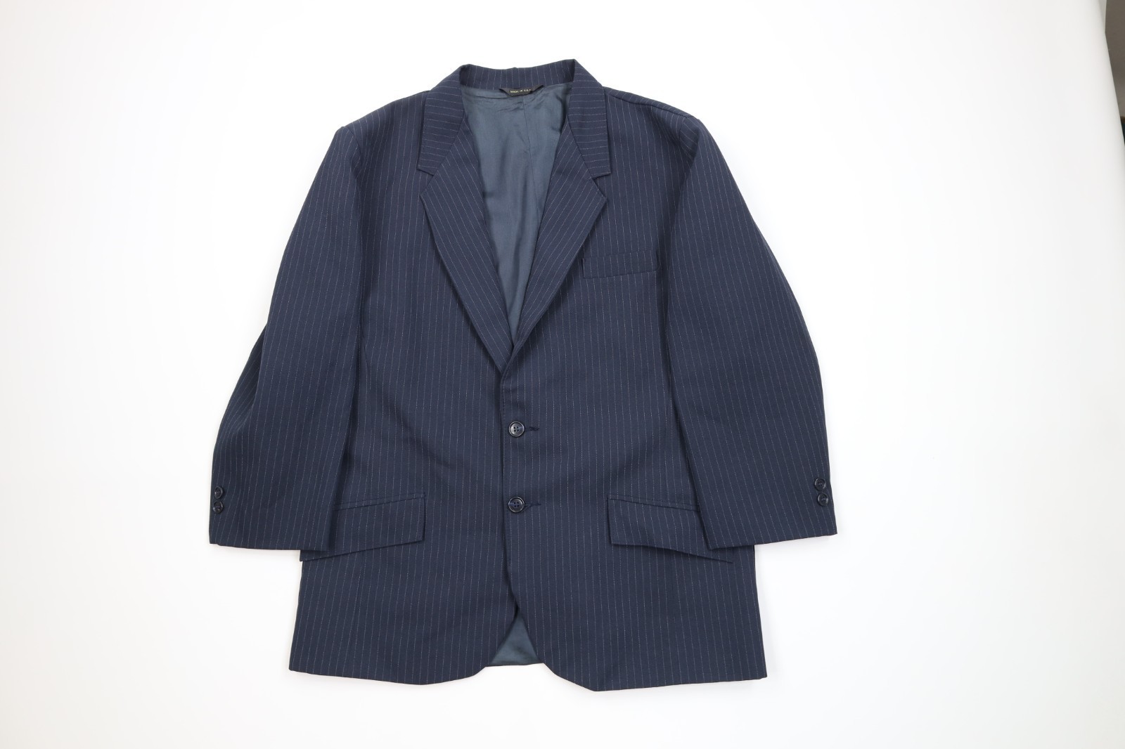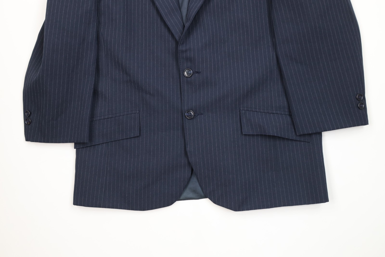 - Vintage 90s Boys Size 20 Husky 2 Piece Pinstriped Knit Suit Wedding Blue USA