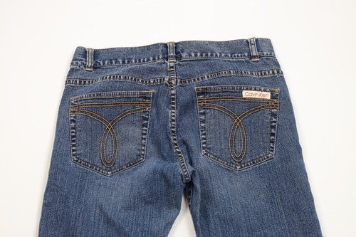 - Vintage 90s Calvin Klein Womens 7 Spell Out Wide Leg Bell Bottoms Denim Jeans