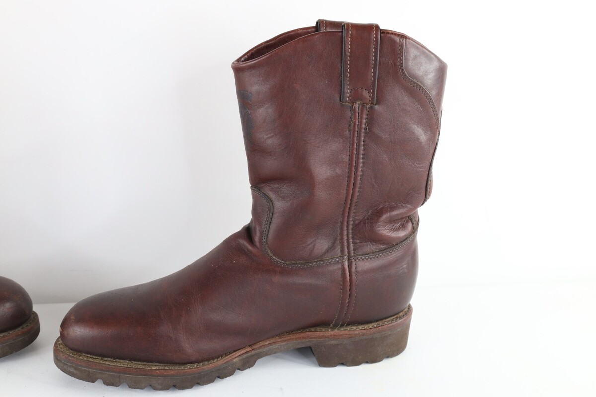Vintage 90s Chippewa Boots Mens 10.5 EE Leather Pull On Cowboy Boots Oxblood USA