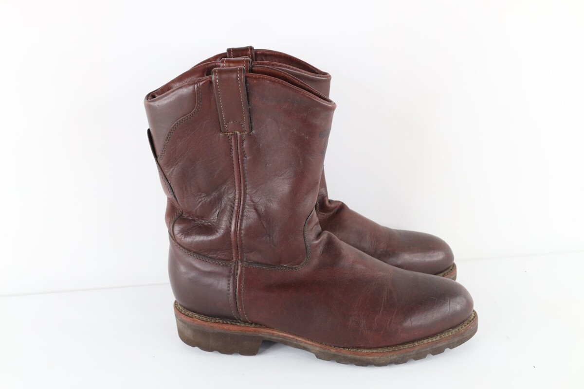 - Vintage 90s Chippewa Boots Mens 10.5 EE Leather Pull On Cowboy Boots Oxblood USA