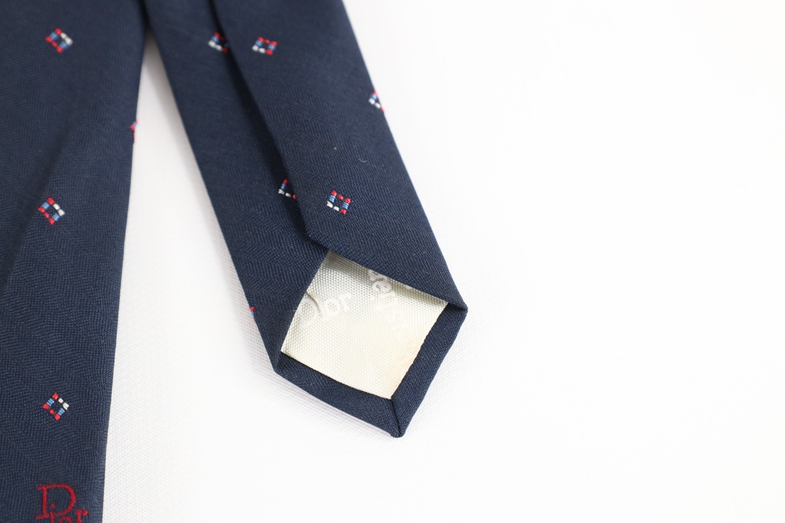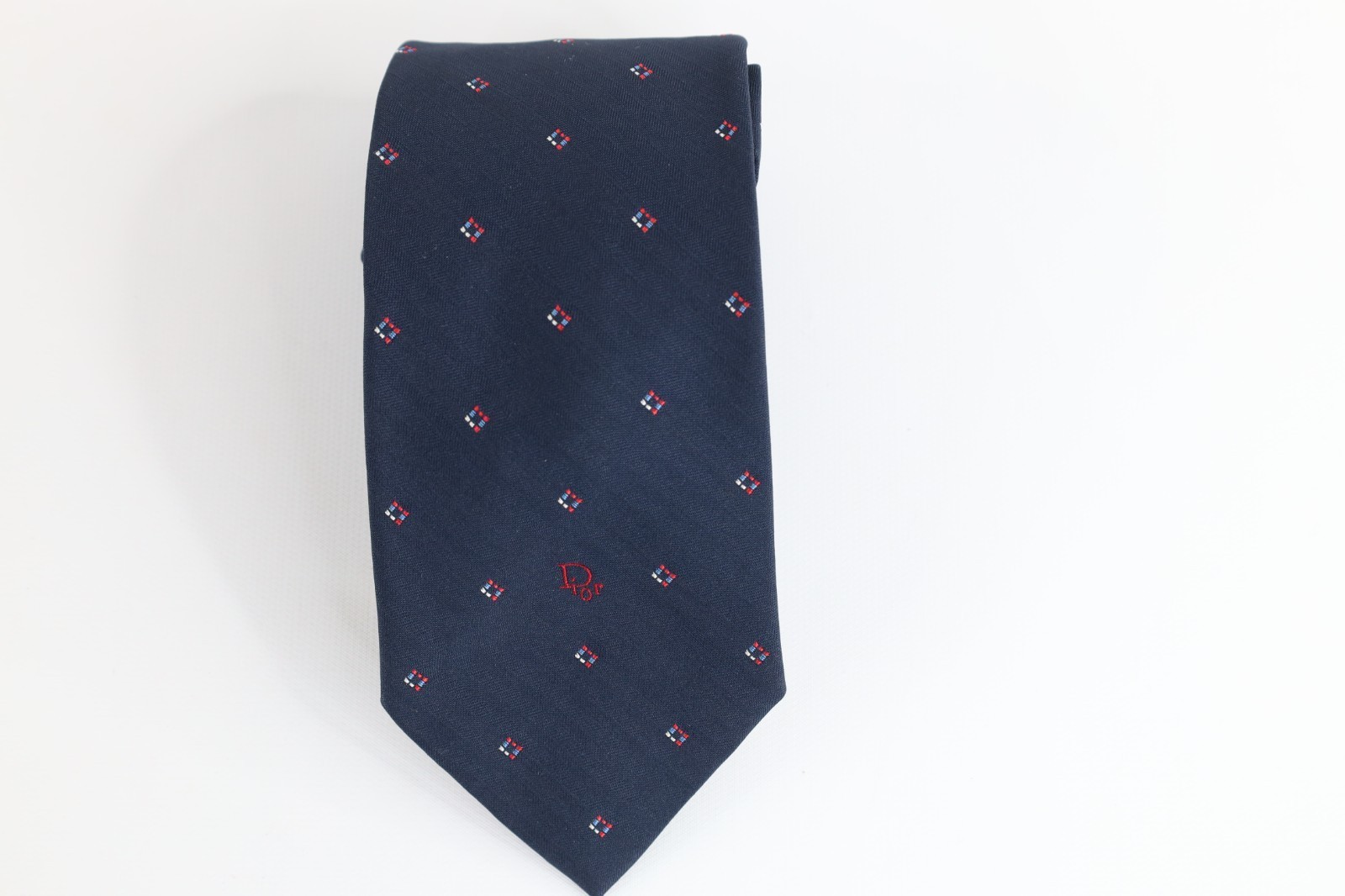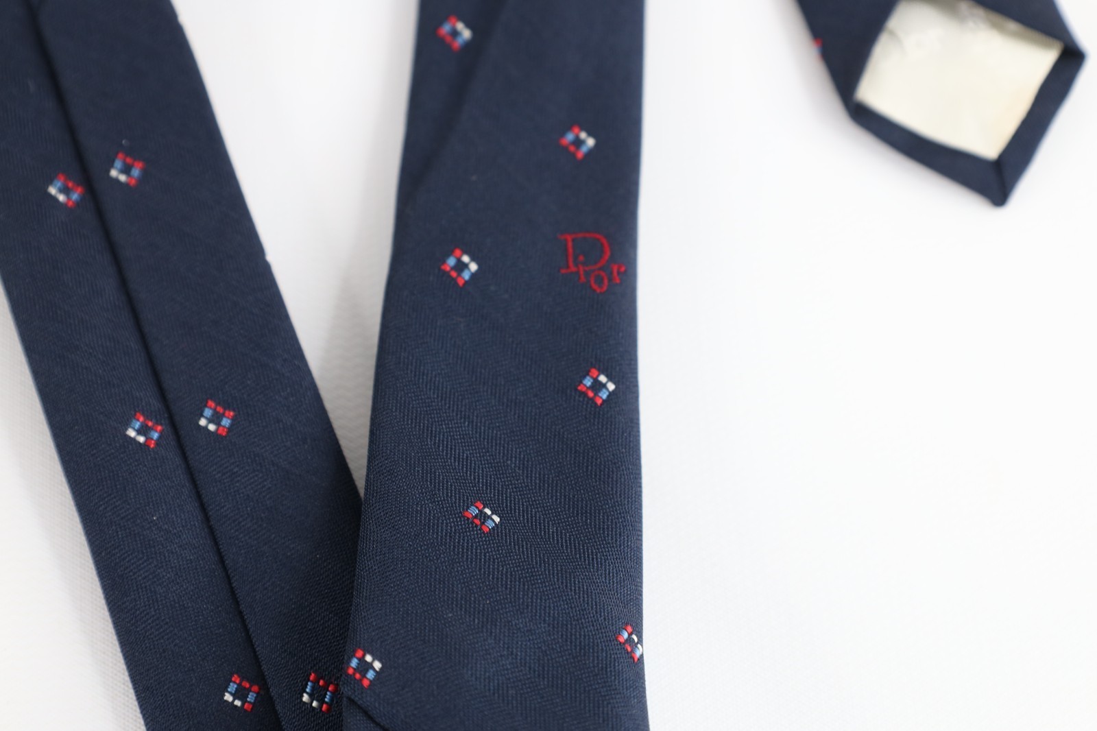 - Vintage 90s Christian Dior Spell Out Geometric Neck Tie Wedding Formal Blue USA