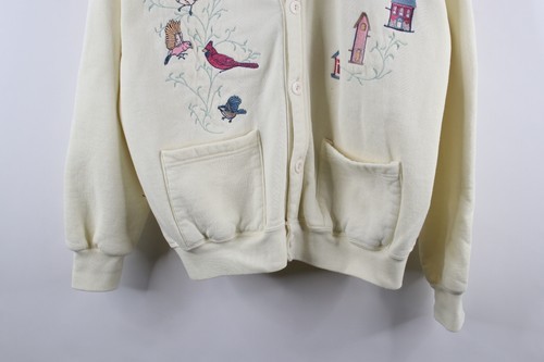 - Vintage 90s Country Primitive Womens XL Distressed Bird Cardigan Sweatshirt USA