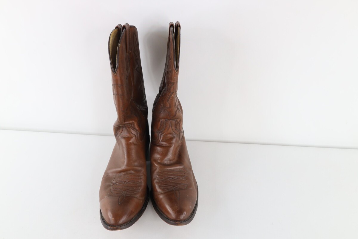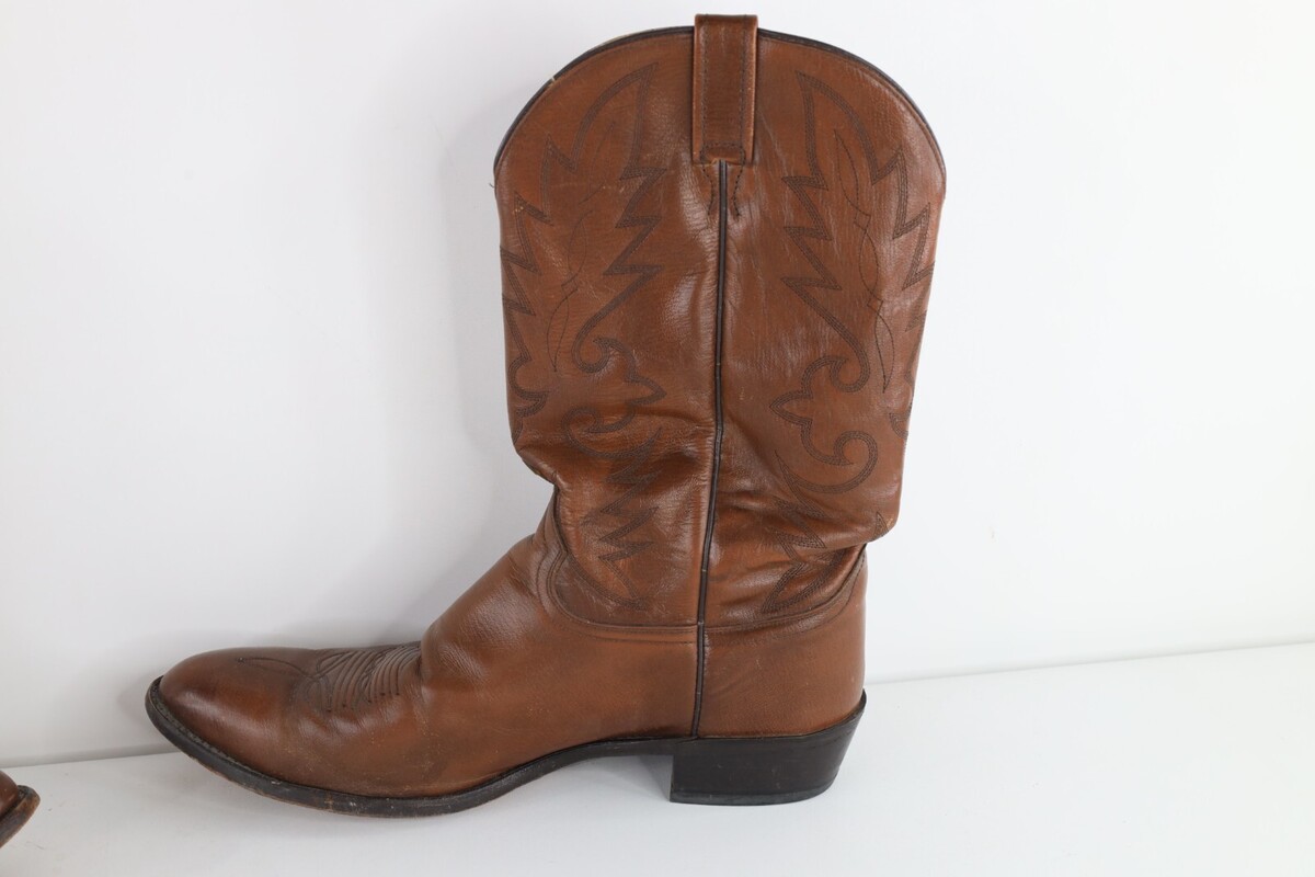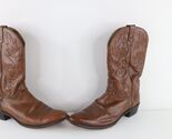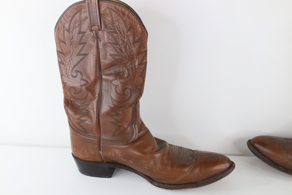 - Vintage 90s Dan Post Mens 15 D Distressed Tribal Leather Cowboy Boots Brown