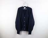 Vintage 90s Izod Mens Size Large Spell Out Knit Cardigan Sweater Navy Blue USA