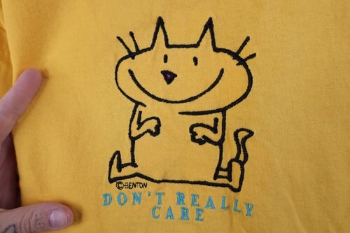 Vintage 90s Jim Benson Womens OSFA Cat Don't Really Care Cropped T-Shirt USA