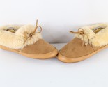 Vintage 90s Lands End Womens 10 Shearling Lined Suede Leather Slippers Chestnut