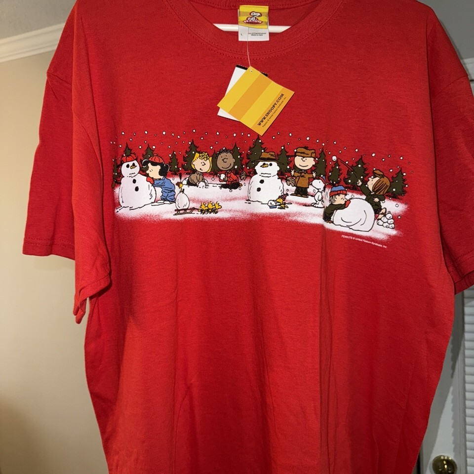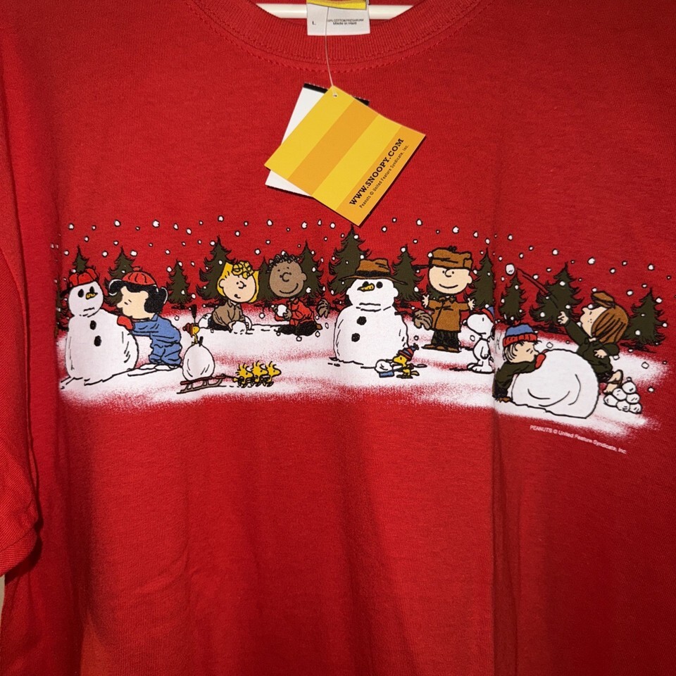 - Vintage 90s Peanuts Christmas Snow Man Holiday T Shirt Adult Large Red Mens NWT