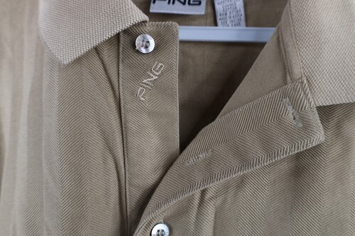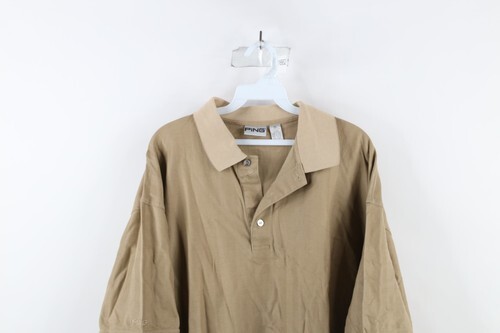 - Vintage 90s Ping Golf Mens XL Spell Out Herringbone Collared Polo Shirt Beige
