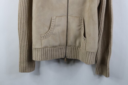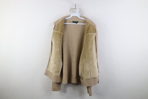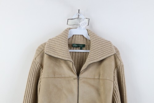 - Vintage 90s Ralph Lauren Womens XL Microfiber Ribbed Knit Sweater Jacket Beige