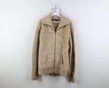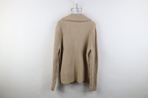 Vintage 90s Ralph Lauren Womens XL Microfiber Ribbed Knit Sweater Jacket Beige