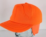 Vintage 90s Streetwear Distressed Blank Foam Ear Flap Fitted Hat Blaze Orange 7