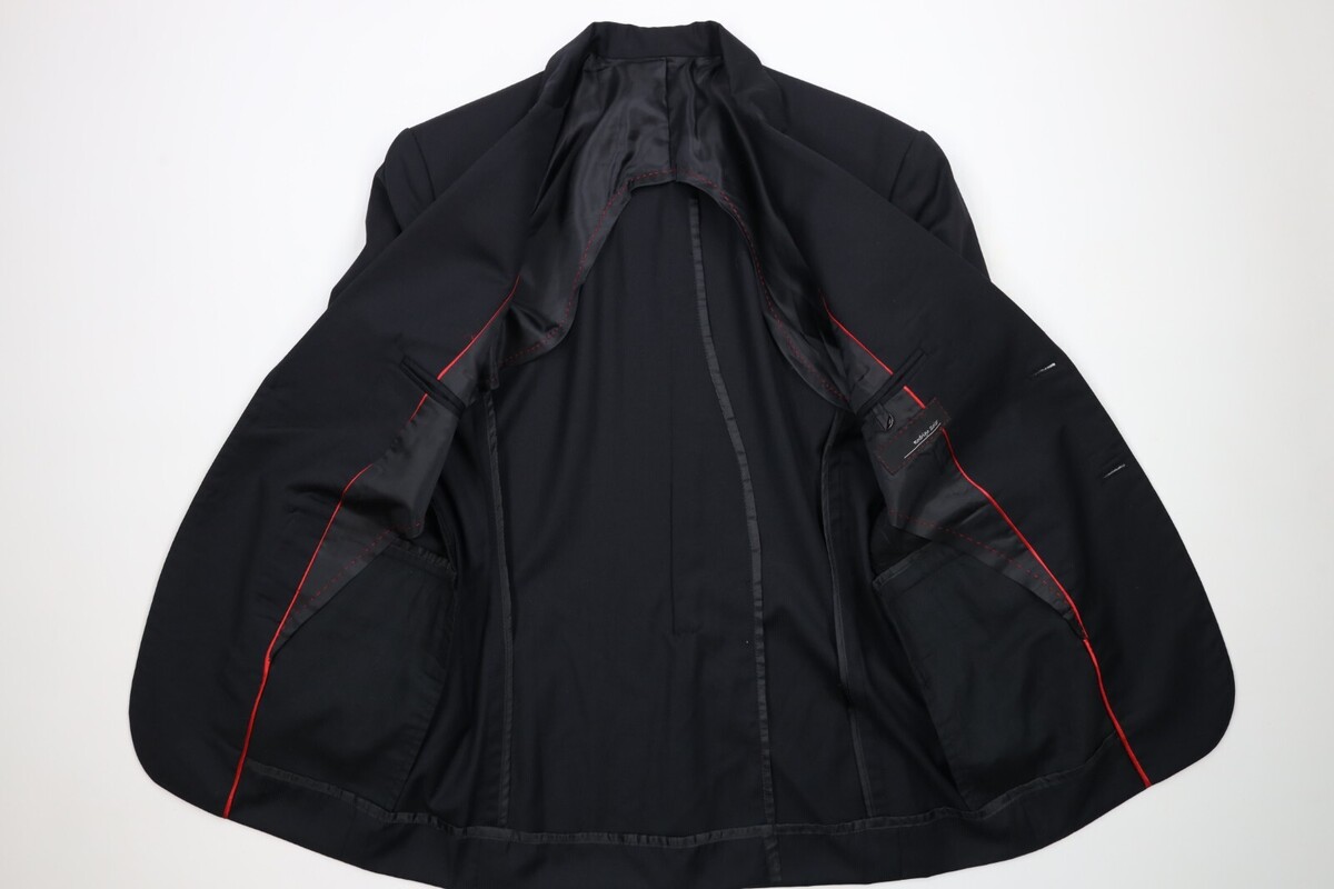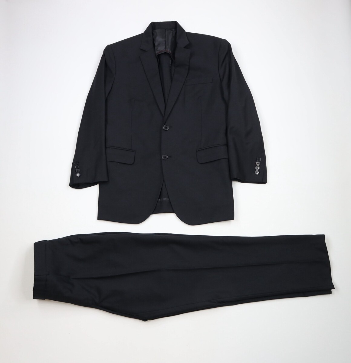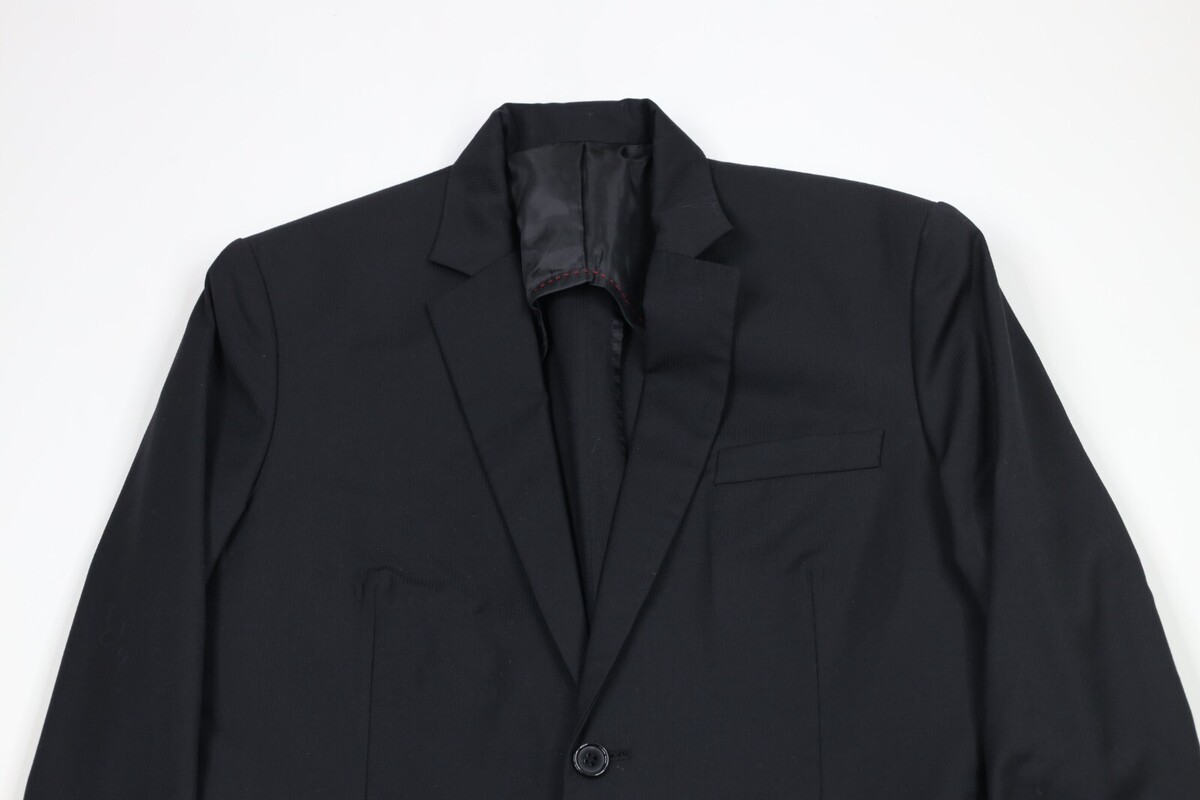 - Vintage 90s Streetwear Mens 40R Wool Blend Striped 2 Piece Suit Wedding Black