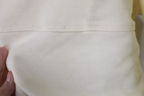 Blemishes front. Collar, cuffs discolored. Color faded. Pilling