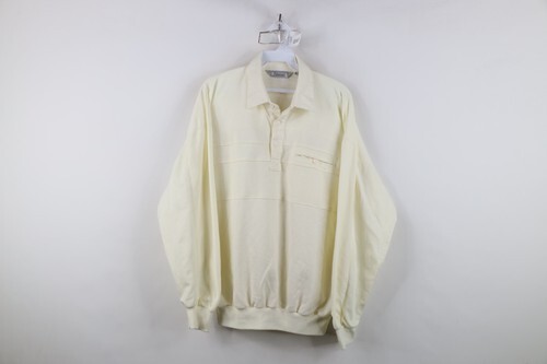 - Vintage 90s Streetwear Mens Size Large Blank Collared Pullover Polo Shirt Cream