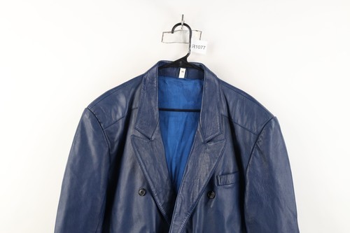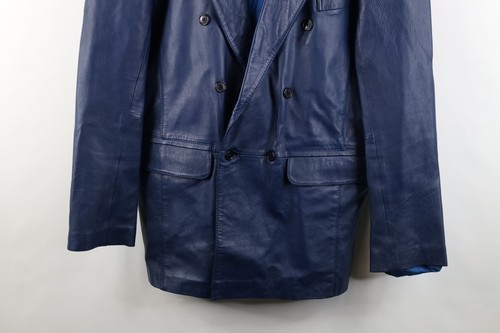 Vintage 90s Streetwear Mens Size Medium Leather Suit Coat Blazer Jacket Blue