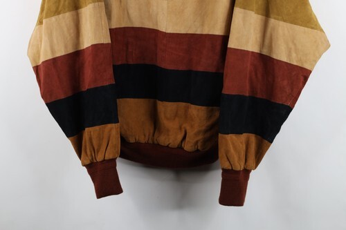 - Vintage 90s Streetwear Mens Small Reversible Striped Suede Leather Silk Jacket