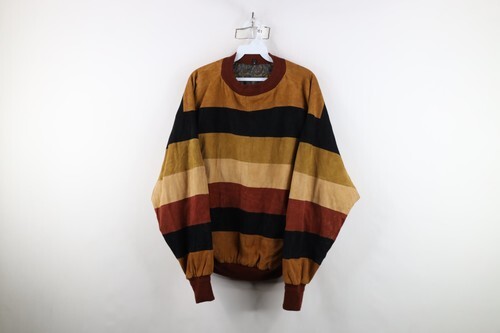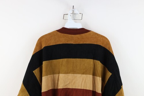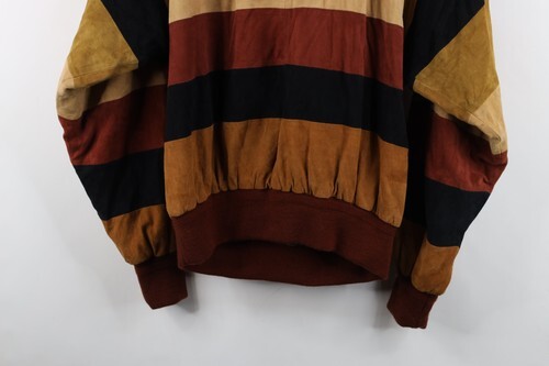 Vintage 90s Streetwear Mens Small Reversible Striped Suede Leather Silk Jacket