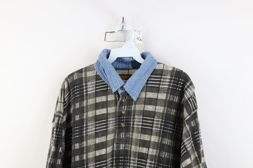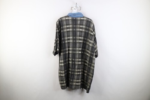 Vintage 90s Streetwear Mens XL Faded Baggy Denim Collar Golf Polo Shirt Plaid