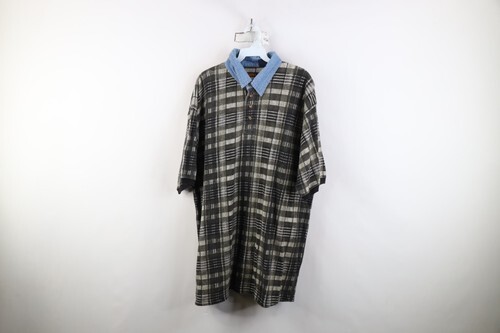 - Vintage 90s Streetwear Mens XL Faded Baggy Denim Collar Golf Polo Shirt Plaid