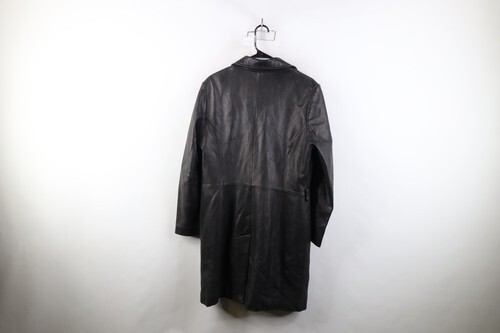 - Vintage 90s Streetwear Womens Large Distressed Soft Leather Trench Coat Jacket