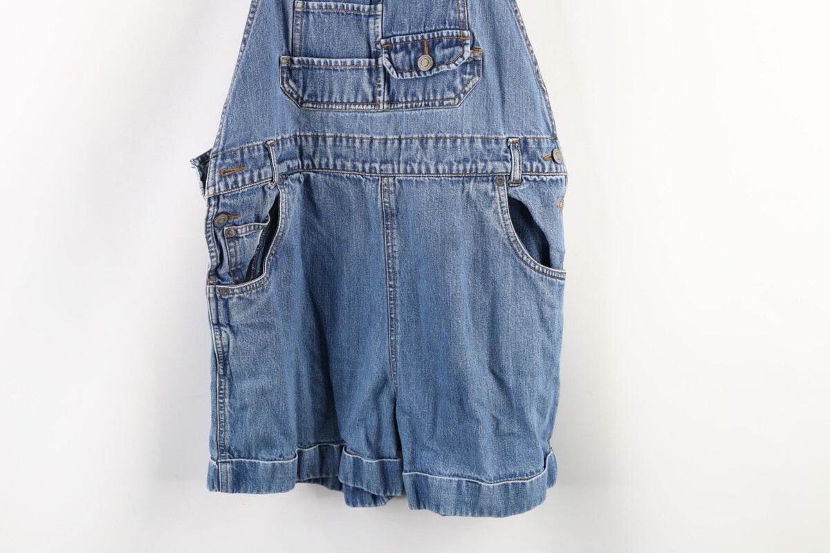 Vintage 90s Streetwear Womens Medium Distressed Denim Jean Overalls Shortalls