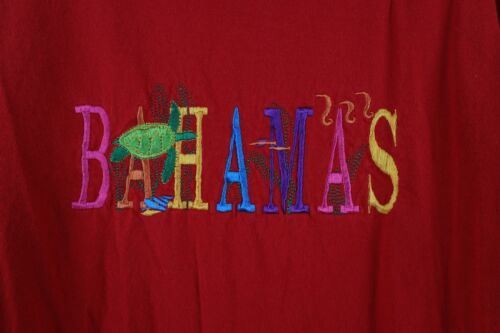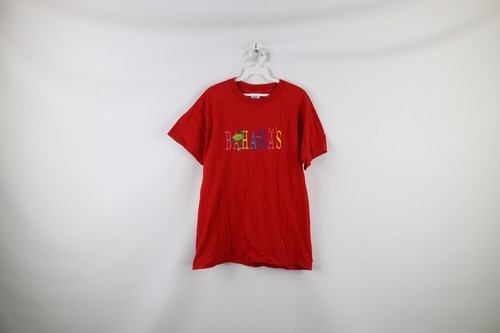 - Vintage 90s Streetwear Womens Medium Faded Bahamas Spell Out T-Shirt Red Cotton