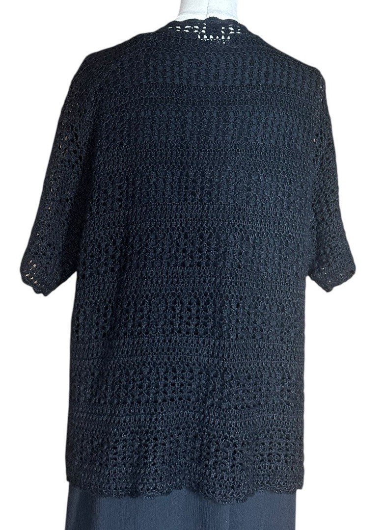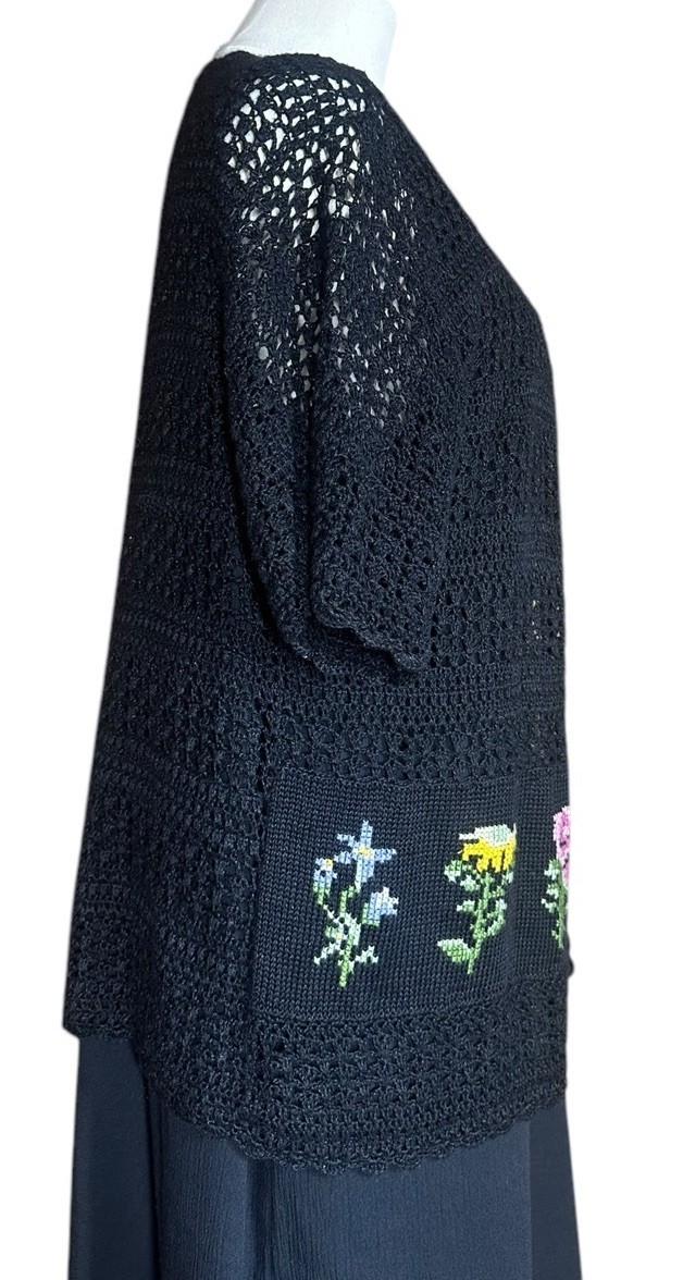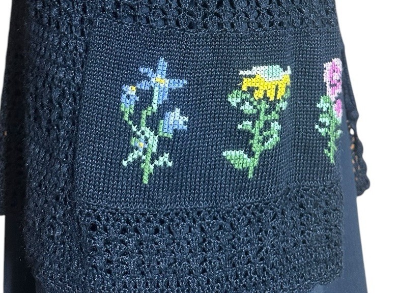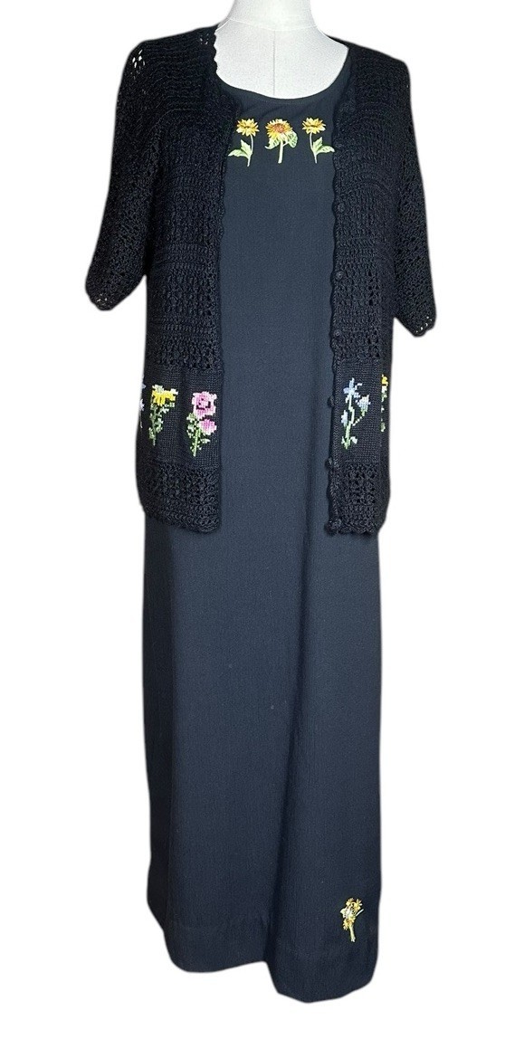 - Vintage 90s Teddi Black Embroidered Floral Dress Crochet Cardigan Set Size M/L?