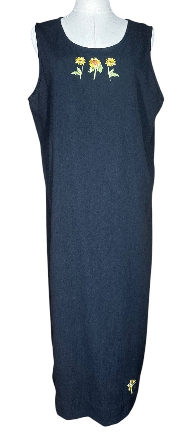 Vintage 90s Teddi Black Embroidered Floral Dress Crochet Cardigan Set Size M/L?