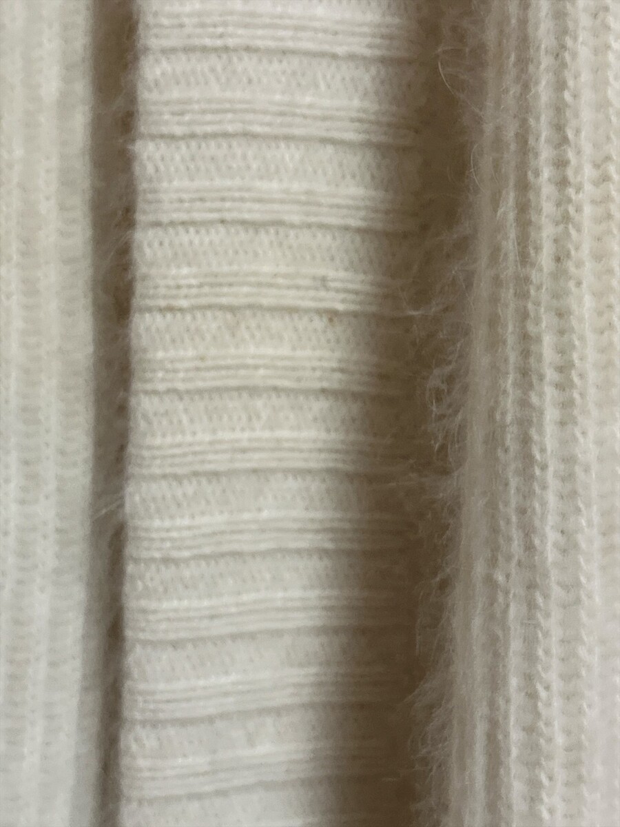 Good pre-owned condition. Light overall fuzziness from the angora content and minor normal wear, no major stains or holes noted. See photos for close-ups.