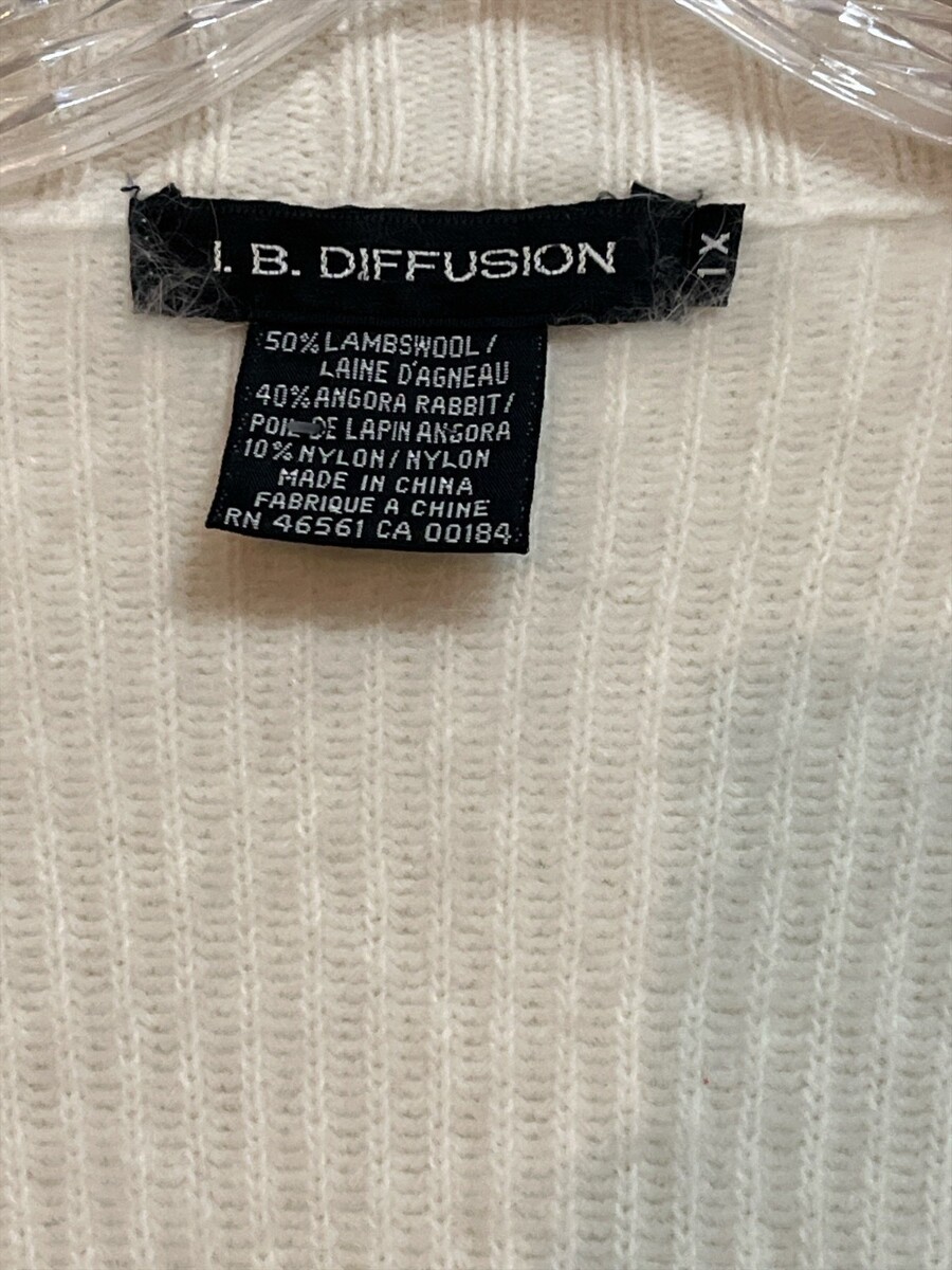 Vintage 90s Y2K J.B. Diffusion Women?s XL Lambswool Angora Open Front Cardigan Sweater Ivory 42x28