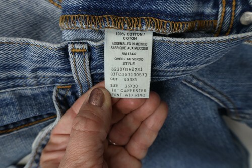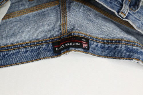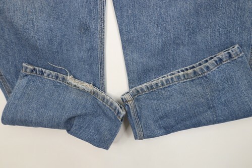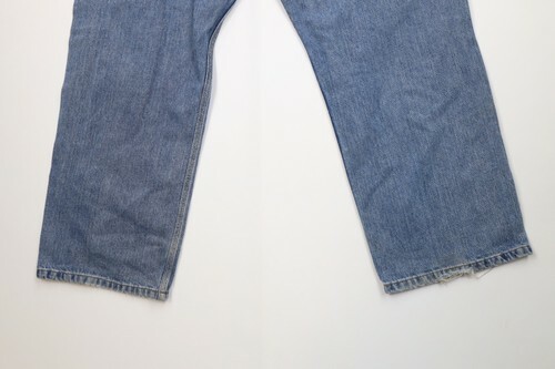 Cuffs ripped. Blemishes front and back. Distressed and faded