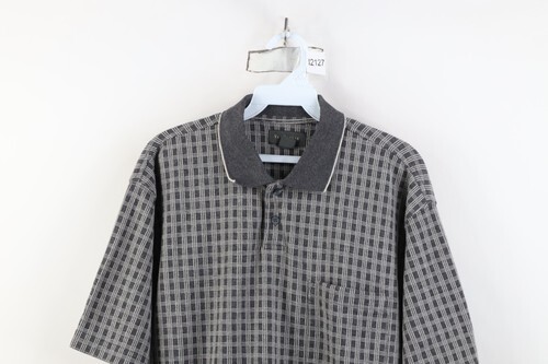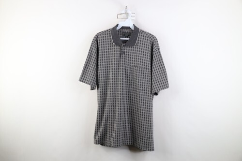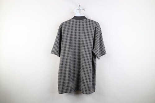 - Vintage 90s Y2K Streetwear Mens Medium Faded Checkered Knit Golf Polo Shirt Gray
