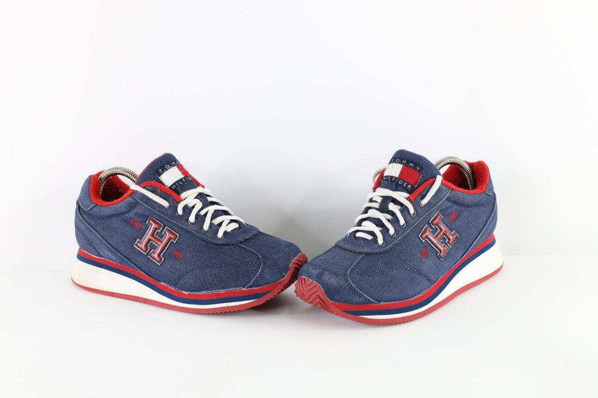 - Vintage 90s Y2K Tommy Hilfiger Womens 10 D Denim Platform Shoes Sneakers Blue