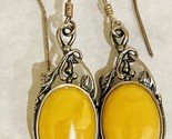 - Vintage 925 Sterling Silver Art Nouveau Egg Yolk Amber Drop Earring stamped