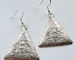 These Vintage 925 Sterling Silver Aztec Sun Stone Dangle Earrings are a unique and beautiful piece of jewelry. The earrings feature a triangle shape design with a hook closure, perfect for those with pierced ears. The metal purity is 925 sterling silver, with a silver color and no main stone present. The Aztec Sun theme brings a touch of beauty and history to the design, making them a standout accessory for any outfit. Made in Mexico, these earrings from the brand BC36 are sure to add a touch of vintage charm to your jewelry collection.